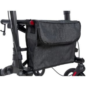 Este andador viene equipado con una cesta de gran capacidad, ideal para llevar objetos personales o compras mientras caminas. Además, incluye una práctica bolsa de transporte con cierre de velcro, que puedes llevar cómodamente sobre el hombro gracias a su correa ajustable.