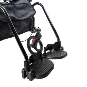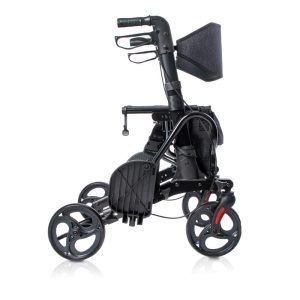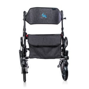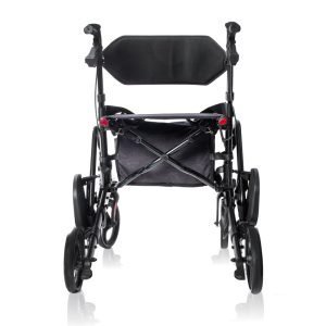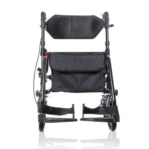 Fabricado en aluminio ligero y resistente, está diseñado para ofrecer la máxima comodidad y seguridad en desplazamientos exteriores. Gracias a su respaldo abatible y reposapiés plegables y regulables en altura, se transforma fácilmente en silla de ruedas manual, ideal para personas mayores o con movilidad reducida.