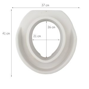 Se encaja de forma sencilla en la mayoría de los inodoros clásicos ovalados, elevando la altura del asiento en 11 cm, sin necesidad de fijaciones adicionales. Gracias a su diseño ergonómico, facilita el acceso al inodoro, reduce el esfuerzo al sentarse y levantarse, y aporta un extra de confort incluso en usos prolongados.