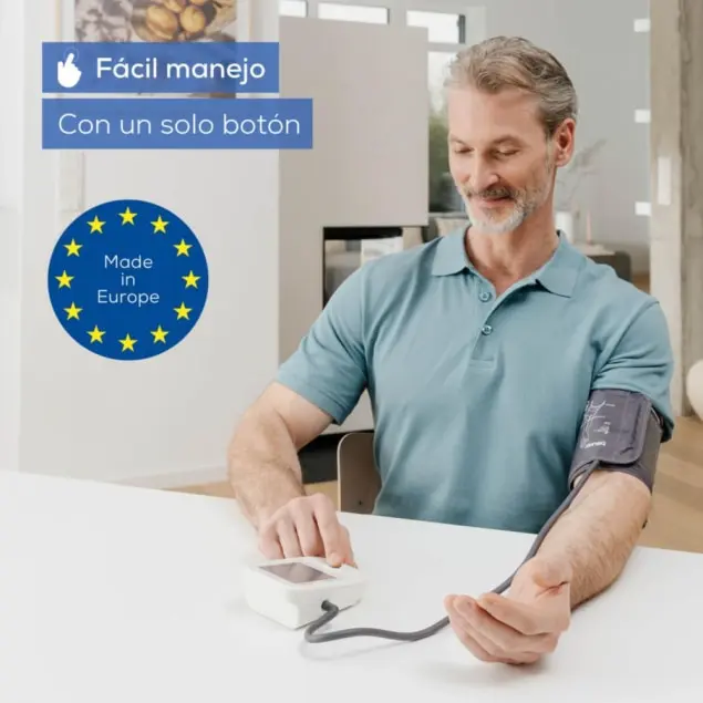 El Beurer BM 38 tiene un argumento diferenciador claro: está fabricado en Europa, lo que para muchos usuarios y profesionales sanitarios es sinónimo de mayor control de calidad en la producción. Su manejo con un único botón lo hace extraordinariamente sencillo, especialmente para personas mayores.