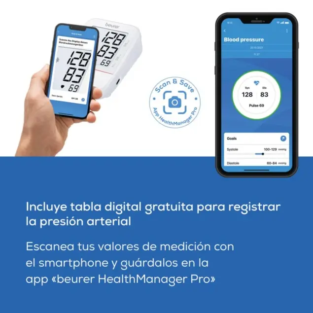 Si además de pantalla XL buscas validación clínica STRIDE BP, el Beurer BM 45 añade botones táctiles y la acreditación ESH. Para más memoria y pantalla similar, el Beurer BM 40 ofrece 2×60 mediciones.